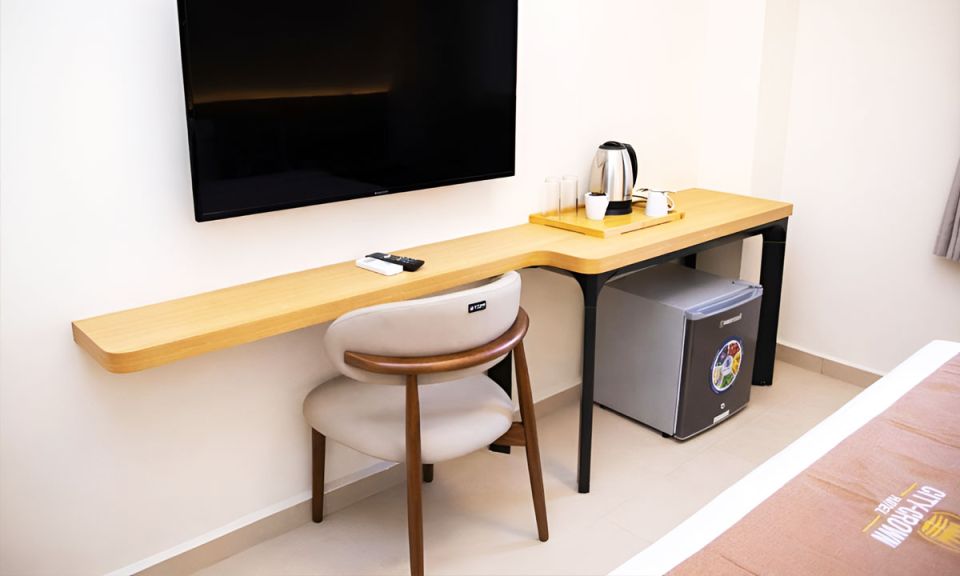 Our Superior Rooms, measuring 27.8 sq mt, offer the utmost comfort and convenience. It features a separate bedroom and living space, a king-size bed, a personalized bathroom with a bathtub and shower, a desk area, and tea and coffee making facilities with a kettle, including Android TVs with DVD players, high-speed internet, and Wi-Fi connectivity